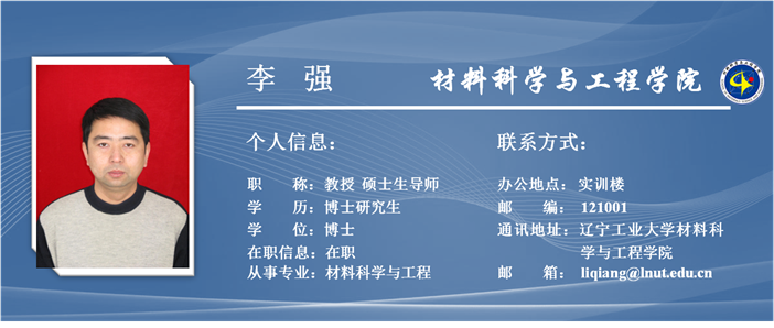 李强,男,1976 年生,辽宁新民人,博士,教授,硕士生导师,入选辽宁省“百千万人才工程”千人层次、辽宁省优秀人才支持计划,担任中国复合材料学会生物医用复合材料分会委员、教育部学位论文评审专家。获东北大学材料学博士学位。现任材料科学与工程学院副院长,主管教学工作。International Journal of Applied Ceramic Technology 等期刊审稿人。