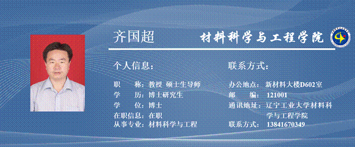 齐国超,男,1968 年生,辽宁北票人,博士,教授,硕士生导师。本科、硕士、博士皆就读于东北大学,主要从事粉末冶金、耐火材料及陶瓷材料等方面的研究工作。