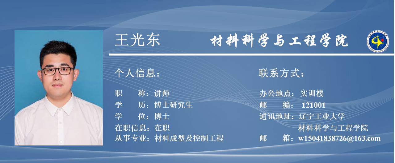 王光东,男,1990年生,辽宁鞍山人,中共党员,博士,内聘副教授,研究生导师。博士就读于东北大学材料科学与工程学院。主要从事高性能铝合金组织控制及性能研究。博士期间参与国家自然科学基金面上项目“车身板用6xxx系铝合金早期时效析出行为”(No. 51871043)、国家自然科学基金项目“基于弥散相粒子组态调控的含镁高硅变形铝合金再结晶机制的研究”(No. 51371045)、省科技项目-自然科学基金,“基于形变热处理(TMT)改善2024铝合金损伤容限性的机理研究”(No. 2019-MS-113)。目前已在Journal of Alloys and Compounds、 Intermetallics Transactions of Nonferrous Metals Society of China、金属学报等期刊发表检索论文16篇,其中SCI论文十余篇,授权发明专利五项。