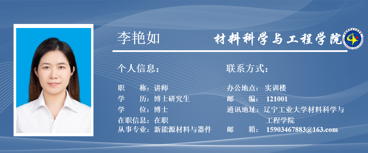 李艳如,女,1989年生,山西吕梁人,工学博士,内聘副教授,硕士生导师,博士就读于兰州理工大学石油化工学院,2024年获兰州理工大学优秀博士学位论文。主持和参与国家自然科学基金和省部级项目3项,横向项目1项,在Small、Nanoscale、Journal of Colloid and Interface Science、Rsc Advances、Journal of Porous Materials、The Journal of Physical Chemistry C、Nanomaterials等国内外期刊累计发表学术论文14篇,其中SCI学术论文12篇,获得国家发明型专利1项。