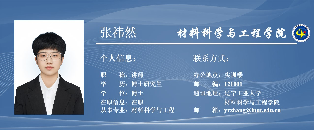 张祎然,女,1993年生,辽宁锦州人,博士,内聘副教授,硕士生导师。在Materials Science and Engineering A、Journal of Alloys and Compounds、Journal of Materials Research and Technology等国内外期刊上累计发表论文10篇,其中第一作者7篇。主持和参与国家自然科学联合基金项目、辽宁省科技厅博士科研启动项目、辽宁省教育厅面上项目等5项。